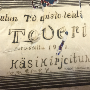 Työpöydälläni on kaunis, ajan patinalta tuoksuva vanha muistikirja, jonka kannessa käsin kirjoitettuna lukee Oulun työväenopistolehti Toveri, käsikirjoituksia 1921–1924, perustettu 1911.
