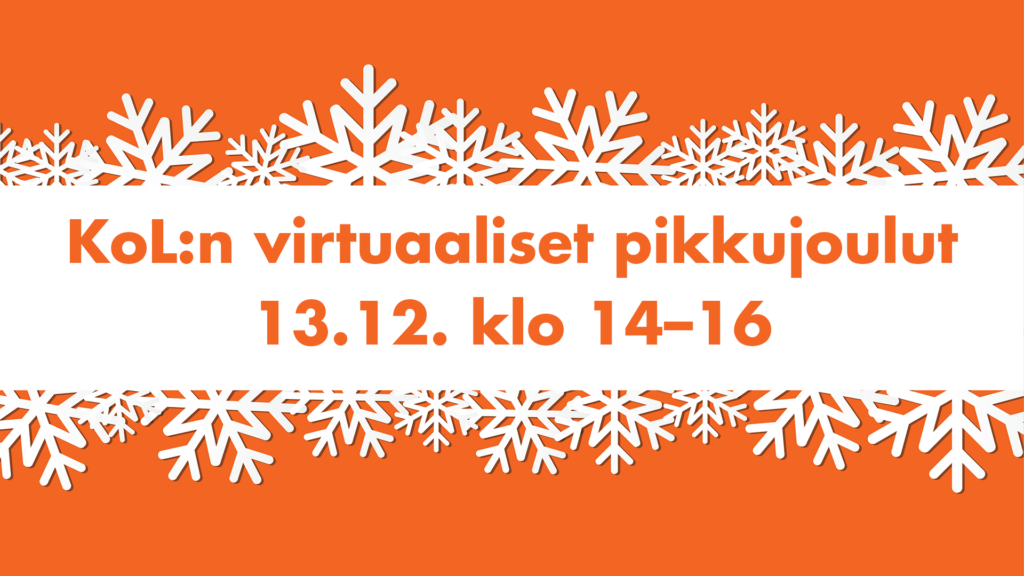 KoL:n järjestämät ohjelmalliset pikkujoulut pidetään verkossa Teamsin välityksellä tiistaina 13.12. klo 14–16. Pikkujouluissa pääsemme mm. seuraamaan kansalaisopistojen jouluaiheisia video- ja live-esityksiä sekä virittäytymään joulunviettoon etäyhteislaulun voimin. Ohjelmassa on myös tilaa opistojen spontaaneille joulutervehdyksille.
