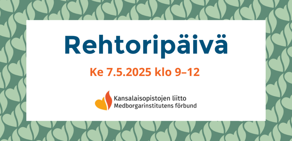 Ke 17.9.2025 klo 13 (Tila B1.4). Puhujina rehtori Sirkka Suomi, Heinolan kansalaisopisto, Jyränkölän Setlementti ry ja toimialarehtori Anna-Maija Iskanius, Espoon työväenopisto, Omnia.