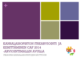 Kansalaisopistojen CAF 2014 -sovelluksen tueksi uutena materiaalina on lisäksi saatavilla pikaopas CAF-itsearvioinnin tekoon. Pikaopas soveltuu arviointimalliin tutustumiseen ja se on myös tarkoitettu käytettäväksi rinnakkain CAF 2014 -arviointimallin kanssa osana itsearviointiprosessia.